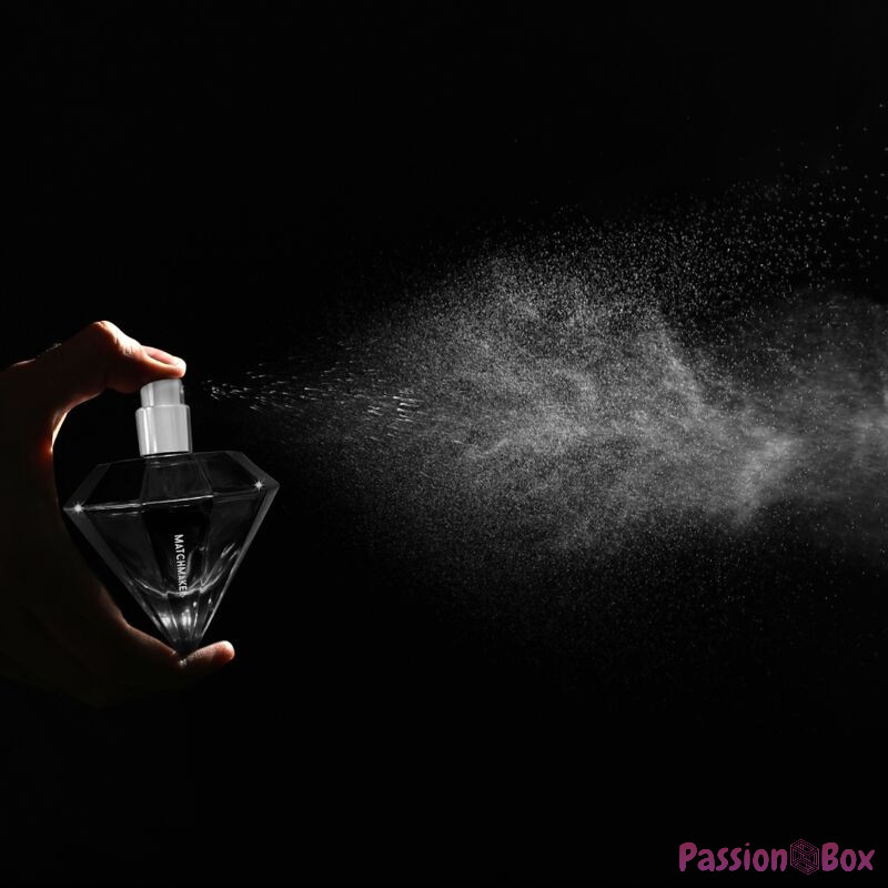 Elegant pheromone cologne bottle with a sophisticated and very light design designed to attract Him