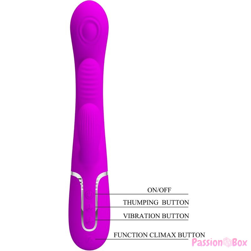 This uniquely textured rabbit vibrator offers mind-blowing internal and external sensations with 7 thumping and vibration settings. This toy is made with a high quality velvet silicone that provides a gorgeously, sexy, silky feel to leave you completely satisfied all night long.
