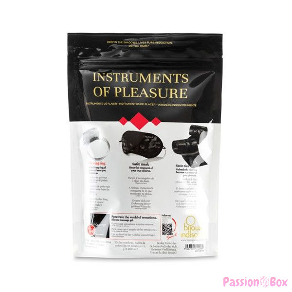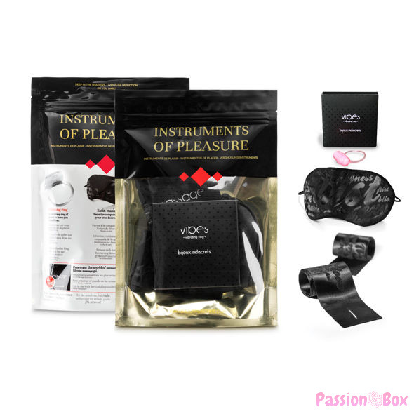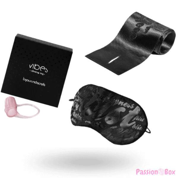 - Contents: Vibrating ring; Satin handcuffs; Satin mask.