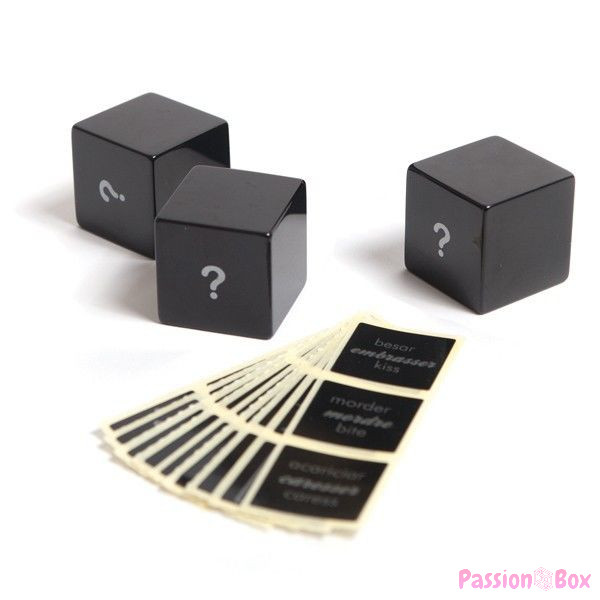 - Contents: 3 dice + 3 sets of 9 repositionable stickers with body areas, actions and places.