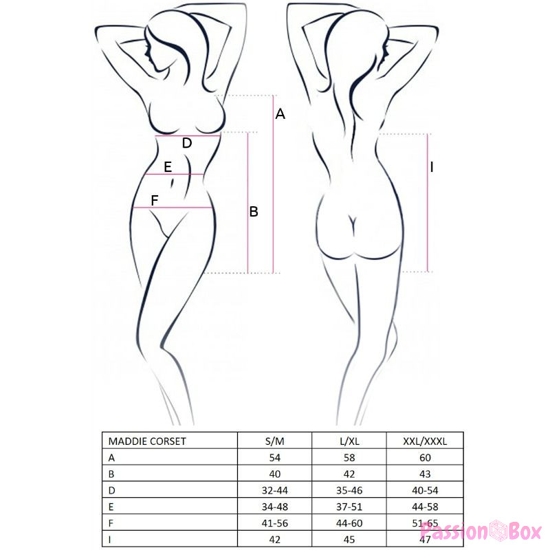 The corset from the Maddie collection is a fabulous piece of lingerie with a spectacularly sexy design with which you will become a bomb of seduction, manufactured by the prestigious sexy lingerie brand Passion