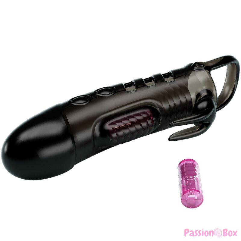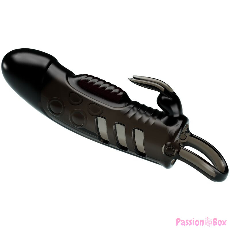 Have some serious, sexy fun with this vibrating rabbit penis sleeve. This erection-enhancing and pleasure-promising penis sleeve is made of soft TPR and is secured in place by a ball loop. A vibrator at the tip extends the length of your penis and is activated on contact. By stimulating the head of your shaft, you also provide internal stimulation for her. Take her to climatic bliss by turning on the rabbit to send vibrations directly to her clitoris. The stretchy sleeve wraps around your penis for a stronger, longer-lasting erection, giving you more time to enjoy the vibrations!