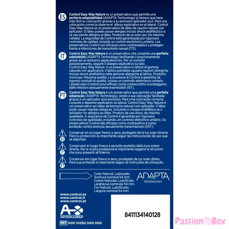 Uninterrupted pleasure. Nature, the best-selling condom in the Control range, is now even easier to put on. Its delicate tab allows it to be unrolled with a single gesture and indicates the correct direction for its use. It is designed for those who do not want to put a stop to moments of pleasure.