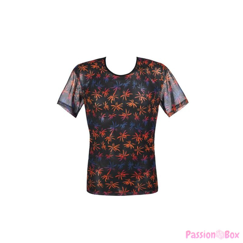 Soft black tulle with colorful print, holiday palms