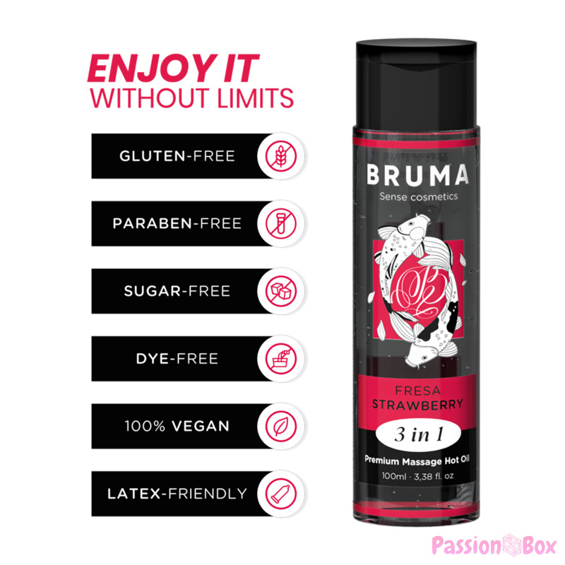 - Delicious Flavors: BRUMA offers a range of delicious flavors in its different versions, allowing couples to explore and enjoy unique experiences. From exotic fragrances to refreshing flavors, this oil adds an extra sensory touch to the experience.
