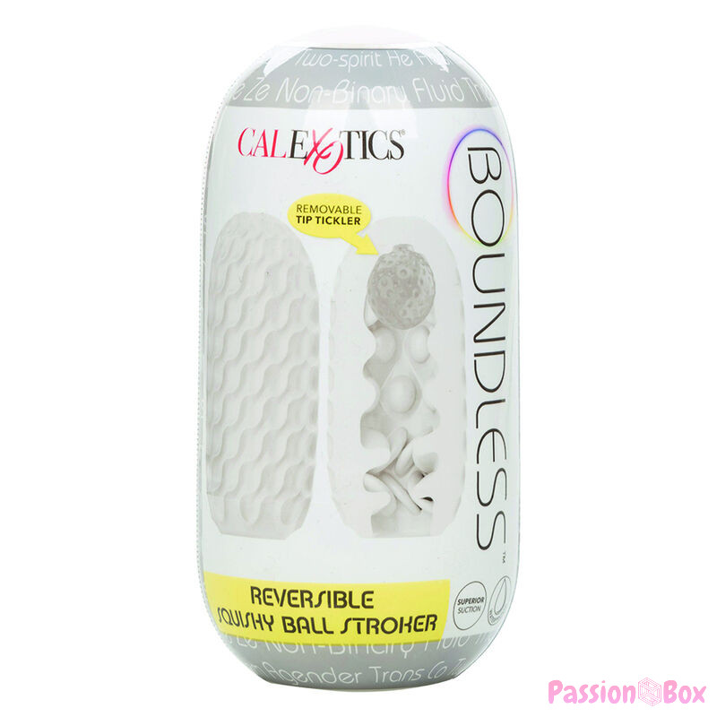 Introducing the Boundless Reversible Squishy Ball Stroker, a premium stroker for unmatched pleasure and customizable sensations. With a soft, tight and stretchy design, this versatile stroker offers a realistic experience. The removable squishy ball allows for personalized tightness and stimulation, tailored to your preferences. Reversible with two unique textures, its ribbed design enhances every movement, providing ultimate satisfaction and intensified sensations. The closed design ensures superior suction for maximum pleasure. Maintenance is easy with hygienic superiority and hassle-free cleaning. Experience personalized pleasure with the Boundless Reversible Squishy Ball Stroker, whether in solo play or with a partner, ensuring unforgettable satisfaction.