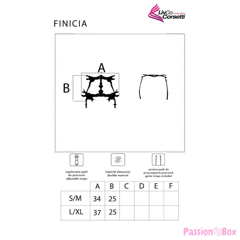 This garter belt is not only extremely visually attractive, but also practical to use. It ensures that the stockings stay in place all day long, giving women a sense of self-confidence and a sensual appearance. The Finicia belt is a perfect choice for romantic evenings for two and other occasions when you want to feel special and seductive.