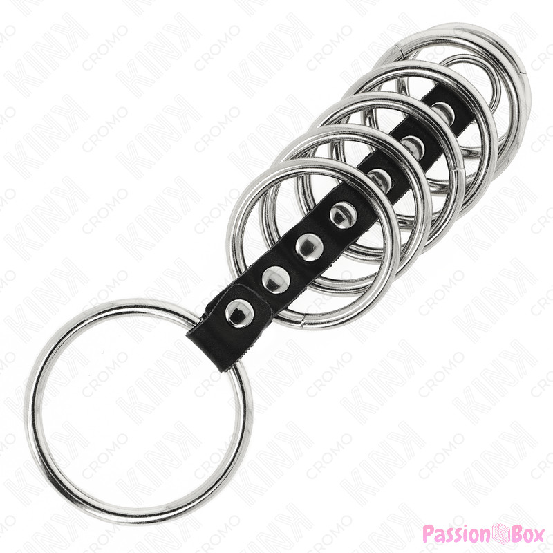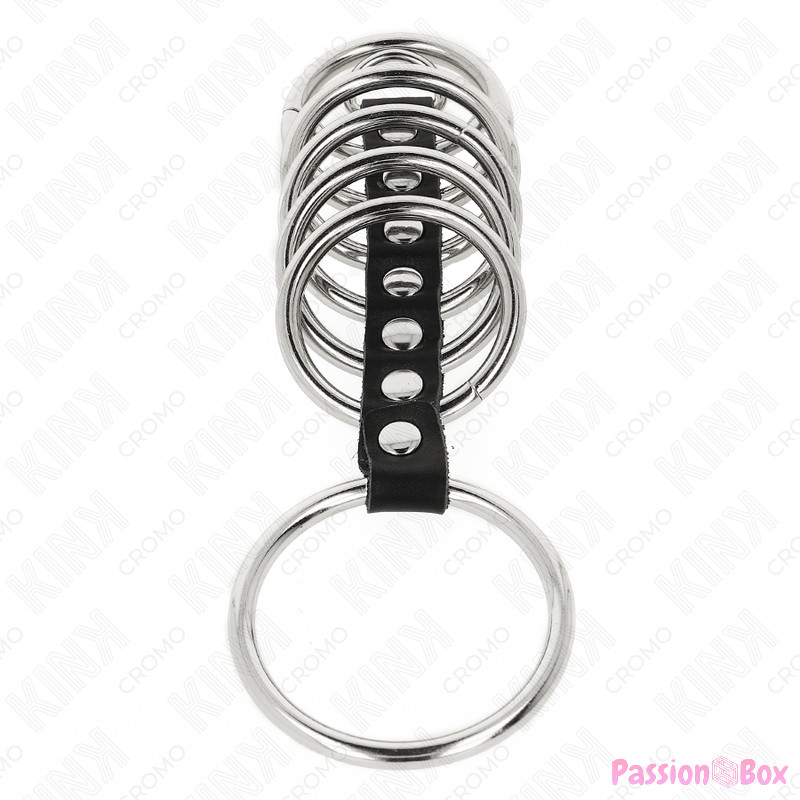 KINK - 7 METAL PENIS RINGS 3.2 CM TO 5 CM CONNECTED BY LEATHER