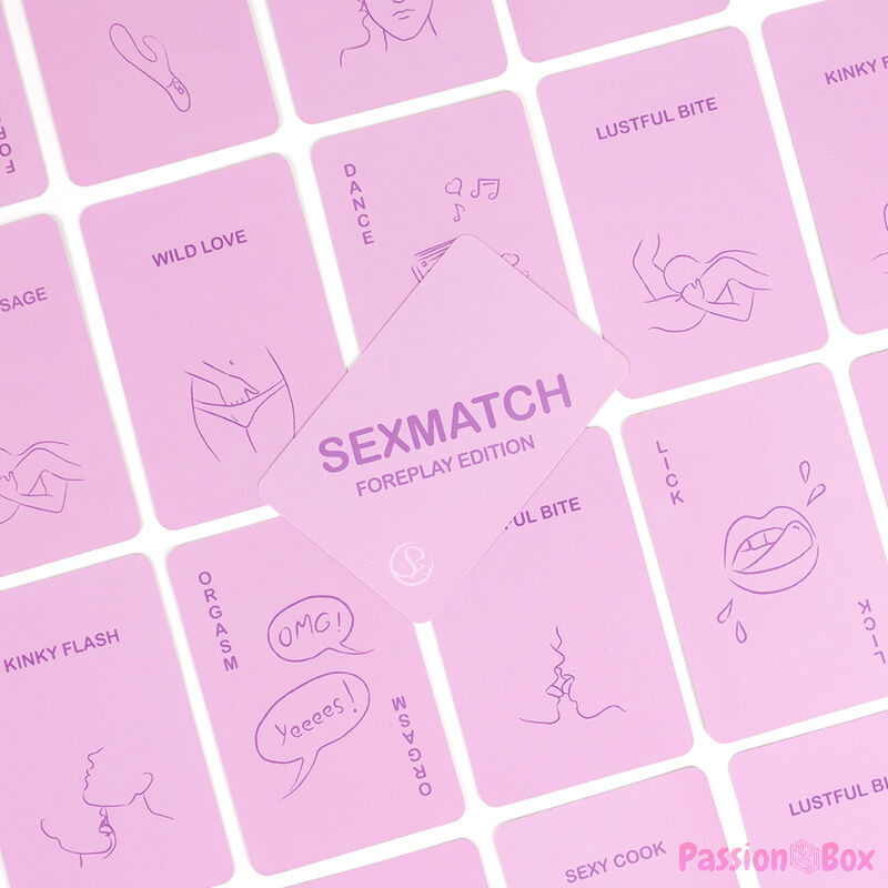 Sexmatch Foreplay Edition es el juego de cartas para parejas en el que debes hacer coincidir ilustraciones y palabras realizando desafíos hasta que uno de los dos se quede sin cartas. El juego contiene 89 cartas de juego (81 cartas y 8 comodines) y 1 carta guía.