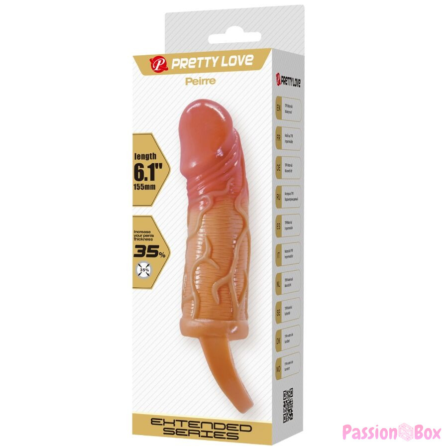 This stretchy sheath adds length, girth, and texture and will fit most cock-sizes.