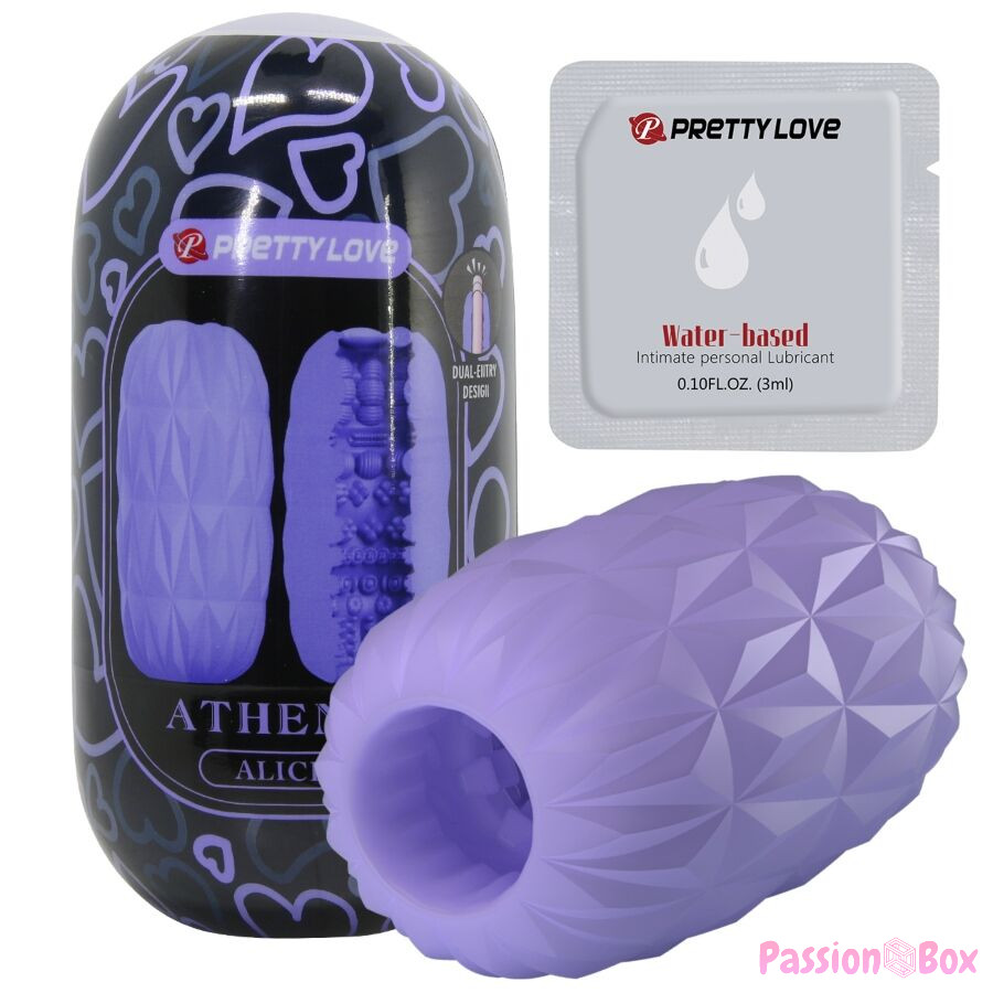 The Pretty Love ATHENA Egg Stroker is made of super stretchy TPR that's easy to stroke and twist around yourself. The exterior features a rippling wave texture that provides a secure grip in your fingers as you play with the stroker, or you can flip the egg inside out to swap to the unique texture inside — squeeze the material as tight as you want to intensify the textures or go easy to feel the texture lightly gliding all over your erection!