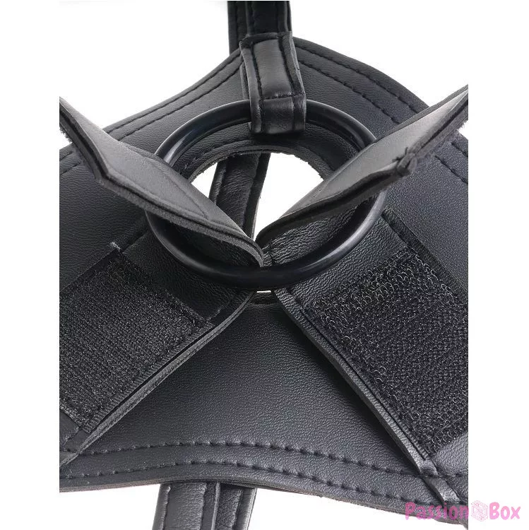 The heavy-duty vinyl harness keeps everything in place even when the action heats up. The form-fitting design hugs your body’s contours and gets even softer and more fitting with each use. With a completely adjustable thong strap and waist straps, it comfortably fits waists up to 52-inches.