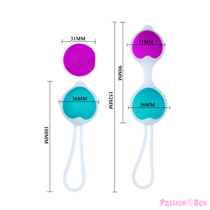 The Pretty Love Balls have a diameter of 3.6 cm and 3.1 cm and a total length of 15.25 cm. including the rope to remove the Chinese ball.