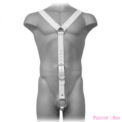 Practice BDSM with this leather harness that will meet all your demands, completely adjustable and with a metal ring for the penis.