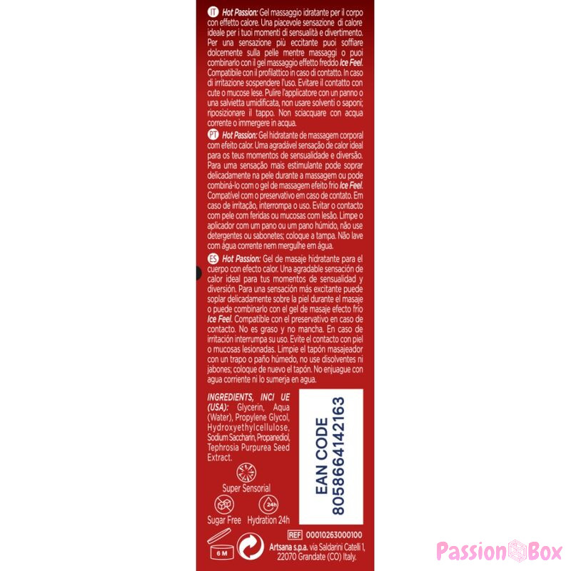 Keep the flame alive throughout your body with the new 3 in 1 Hot Passion: Massage, stimulate and lubricate thanks to its long-lasting formula for lubrication and its pleasant heat effect that sensitizes and stimulates to make intercourses more pleasant