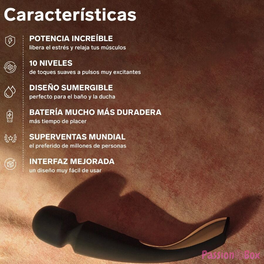 With a perfected design, this powerful massager has ten different vibration patterns that help relax muscles and enhance sensations in any part of your body. Now with a more stable handle and an even longer lasting charge, so you can enjoy hours and hours of pleasure and rest in the most peaceful orgasms.