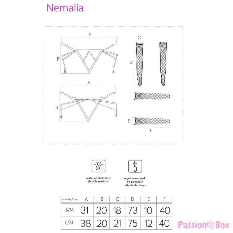 The garter belt, stockings and gloves set Nemalia from the Livco Corsetti Fashion brand is the embodiment of elegance and sensuality. Designed to highlight the natural beauty of the female body, this set is ideal for special occasions or to add a sophisticated touch to your everyday lingerie.