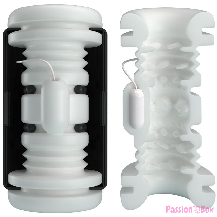 Enjoy deep and satisfying pleasure with this multi-speed vibration masturbator cup. This fantastic male toy will give you an experience much more than usual, because of its unique clamping design, the cups on both sides can be squeezed manually for greater pleasure. And ultra-realistic entry points plus ribbed and ridged internal sleeves make for the perfect penetration experience while the multi-speed vibration design gives you maximum sensations. Enjoy the textured inner canal until you reach an intense orgasmic release.