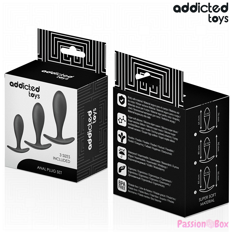 This set includes three anal plugs of different sizes, allowing for gradual adaptation for users of different levels, from beginners to more experienced people. Each plug has a smooth and curved design, which facilitates a smooth and comfortable insertion. The anchor-shaped base ensures safety and comfort, preventing over-insertion and allowing for easy removal.