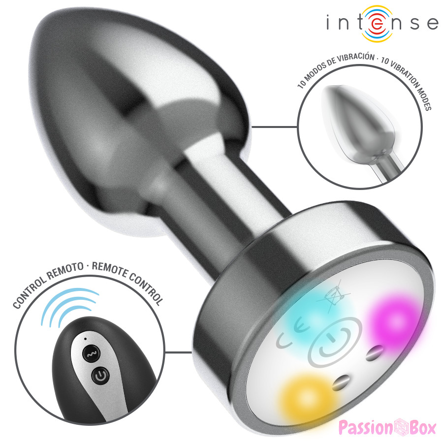 INTENSE - VIBRATING METAL ANAL PLUG WITH LED LIGHTS AND REMOTE CONTROL - SIZE M