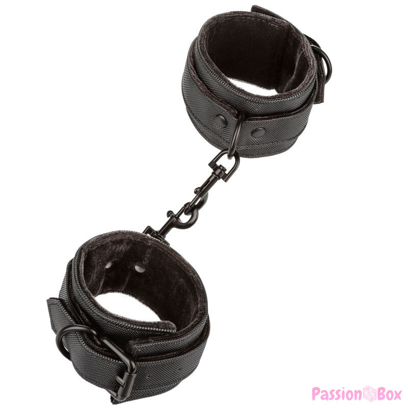 The sturdy, double-padded, double-stitched design ensures the high-quality material is securely bound together, and the fully adjustable hook and loop design ensures that the user is, too. Universal clasps on a D-Ring structure with swivel design gives the user full dexterity while maximizing restraint and minimizing pain. Need some extra leg room? The fully-detachable clasps can be removed and attached to the chain or rings of your choice.