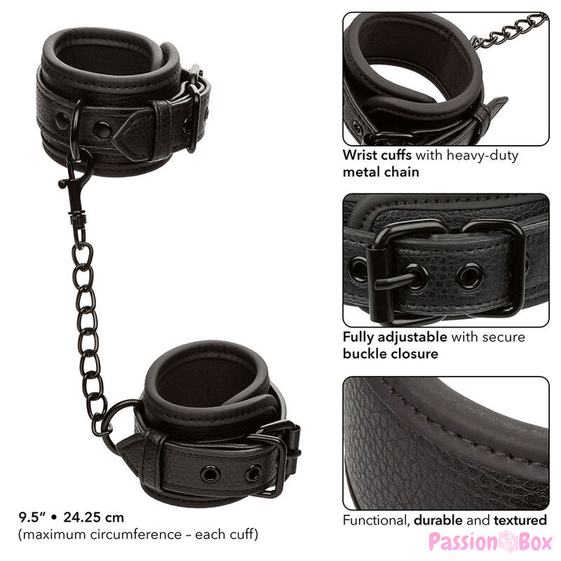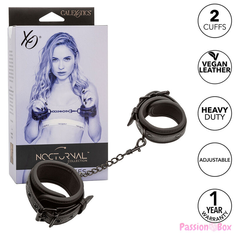 CALEXOTICS - NOCTURNAL LEATHER WRIST CUFFS ADJUSTABLE BLACK