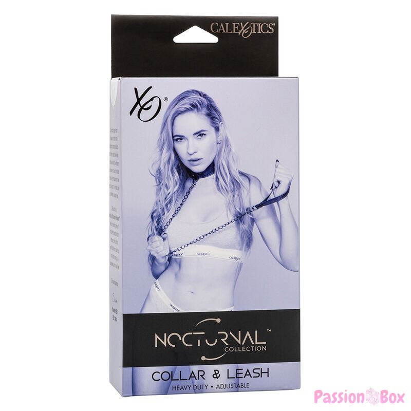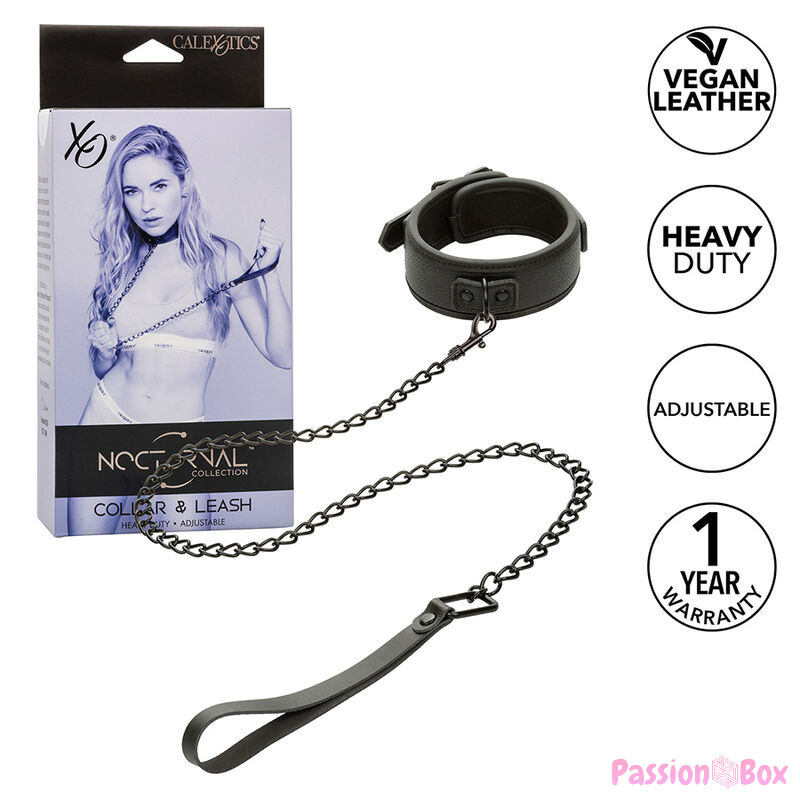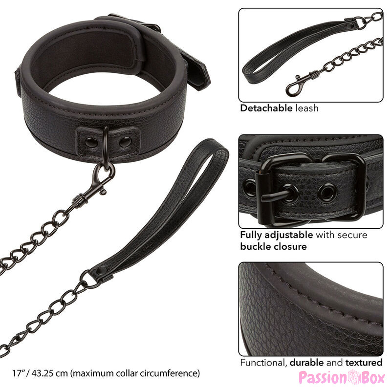 CALEXOTICS - NOCTURNAL COLLAR & LEASH LEATHER ADJUSTABLE BLACK