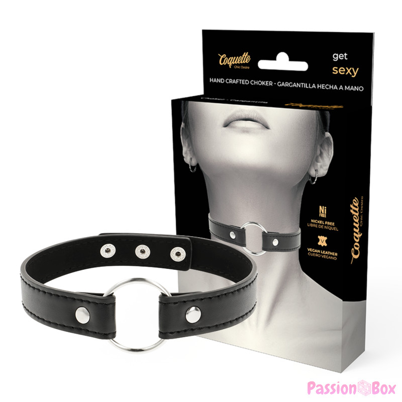 Made of vegan leather, it has a secure three-snap closure that allows it to adjust to all neck sizes, being comfortable.