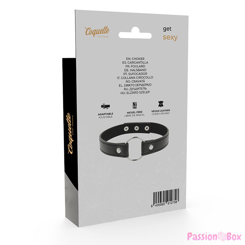 This fetish collar is an exclusive vegan leather piece to complement your wardrobe as an accessory.