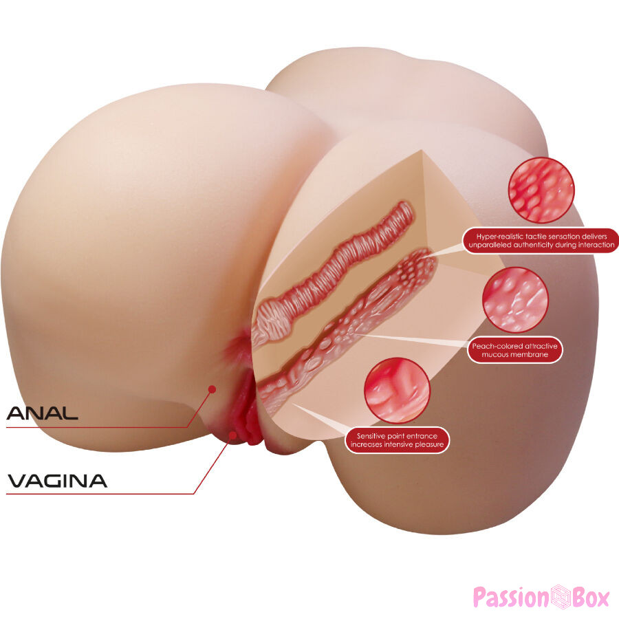 This masturbator has two realistic entrances: a tight, twisting vagina full of internal ribs that stimulate every movement, and a tight anus for those seeking an extra challenge of pressure and realism. Its internal tunnel is Covered in spiral textures and strategically placed pleasure nodules to intensify every penetration and bring you to deeper climaxes.