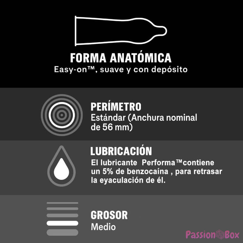 Durex pleasure extended are condoms with lubricant Performa for a longer lasting pleasure. Durex pleasure prolonged prolongs your relationships thanks to its retardant effect, increasing the time of enjoyment.