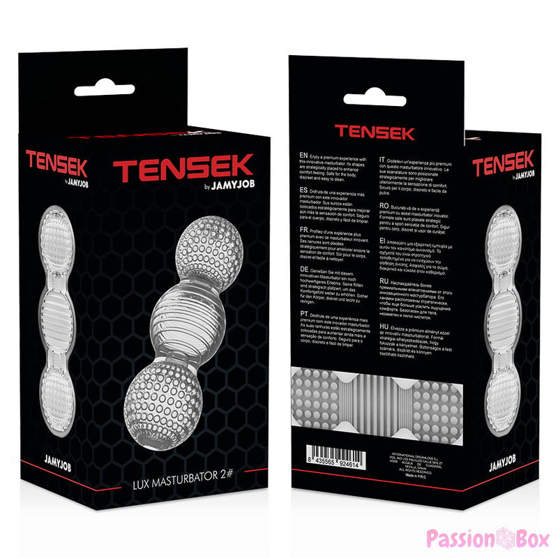 Enjoy a completely new experience. The innovative TENSEK 2 model joins the JAMYJOB line of masturbators and features a unique completely transparent design that leaves nothing to the imagination.