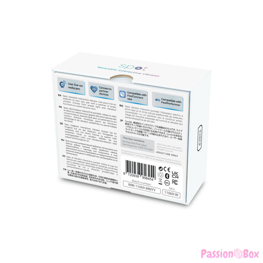 Made from high-quality, body-safe materials, the SPOT KISS ME is waterproof, allowing you to use it in the shower or bath, adding an extra touch of sensuality and fun. Whether you use it alone or with a partner, this vibrator is designed to accompany you in your exploration of sensuality, offering you new ways to enjoy pleasure.