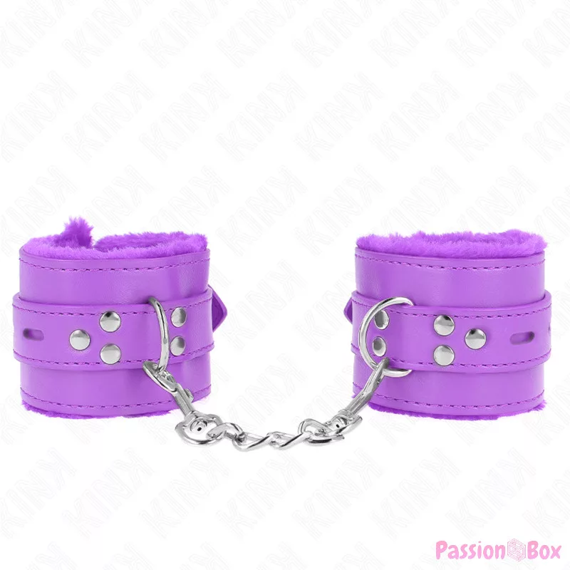 KINK - FUR LINED WRIST RESTRAINTS WITH SQUARE HOLES PURPLE AND PURPLE BELT ADJUSTABLE 17-29 CM X 6 CM