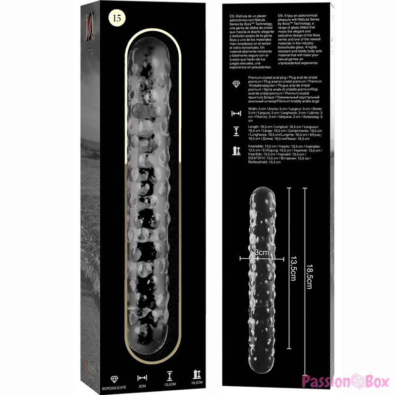 NEBULA SERIES BY IBIZA - MODEL 15 DILDO BOROSILICATE GLASS CLEAR 18.5 CM -O- 3 CM