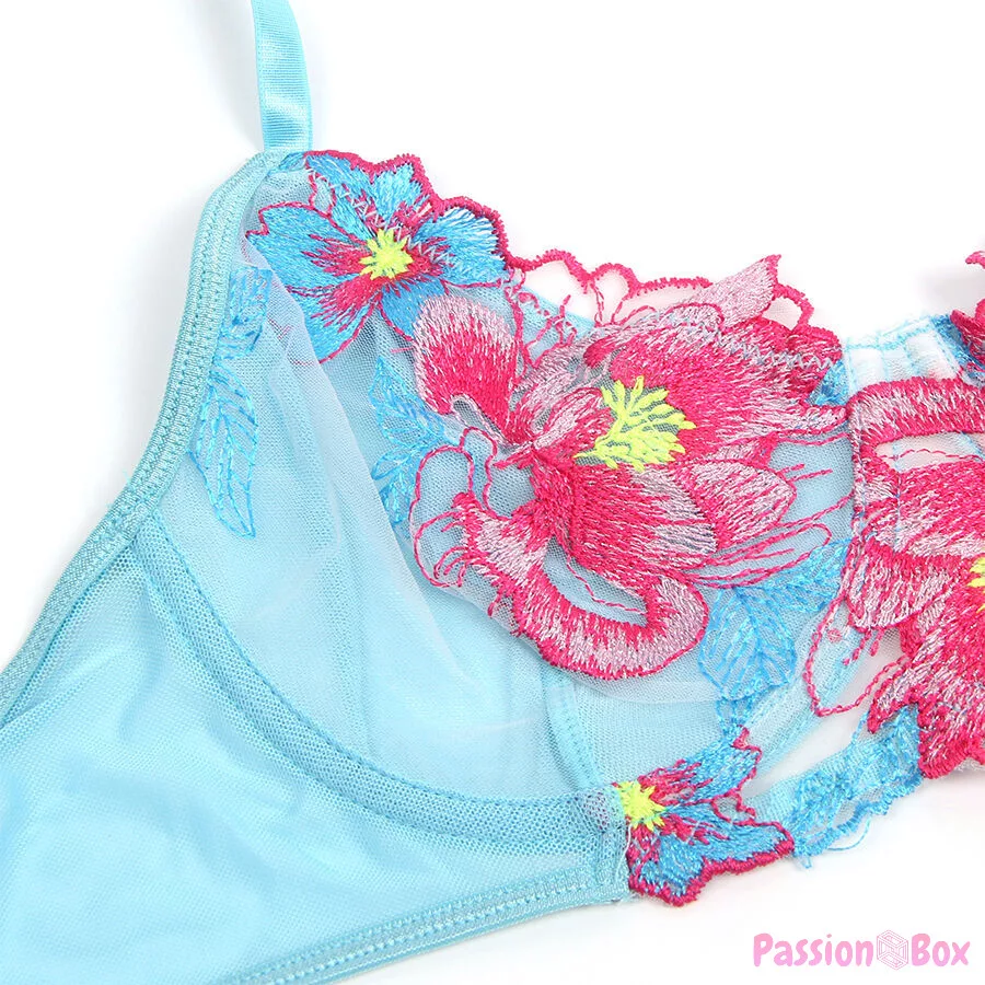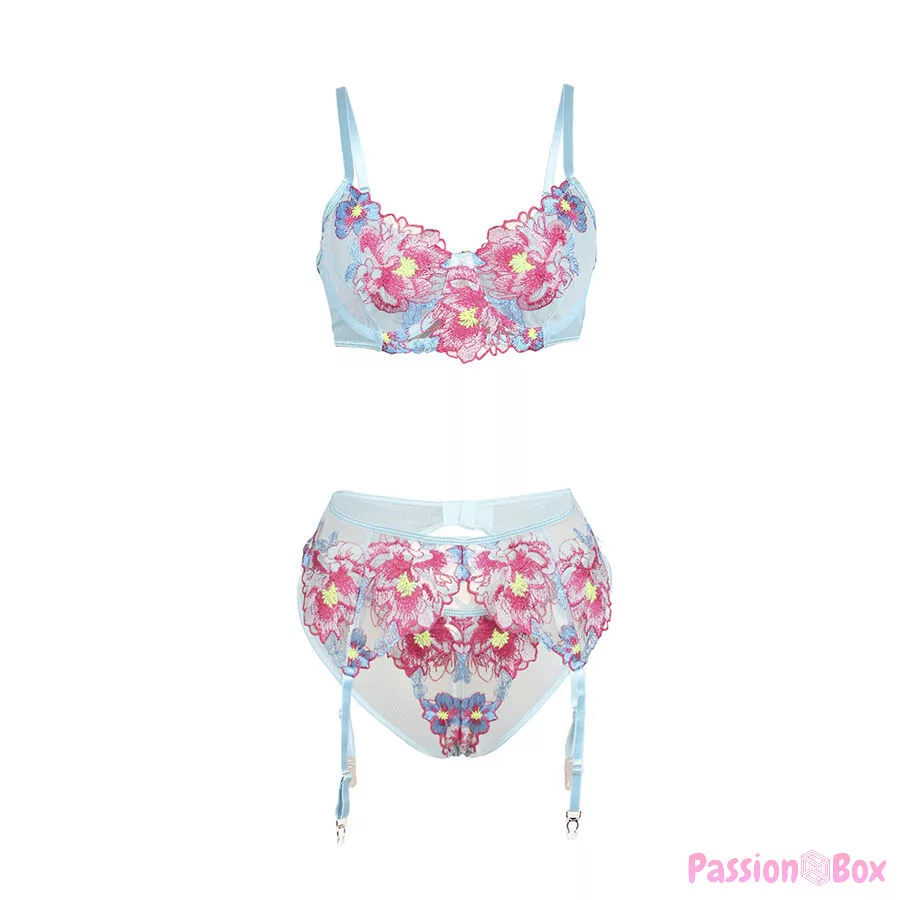 Ideal for special nights, intimate moments or just to feel amazing on any occasion, the Blue Sexy Mesh Embossed Floral Bra Set with Garter Belt from SUBBLIME is the perfect choice for those looking for feminine, elegant and seductive lingerie. Let yourself be enveloped by its charm and dazzle with the sophistication of this impressive blue set!