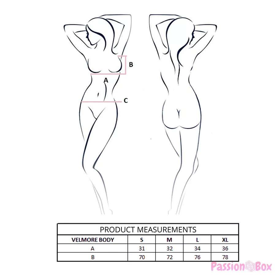 - The VELMORE bodysuit is the very definition of femininity in its most spectacular form: elegant, versatile, and unforgettable.