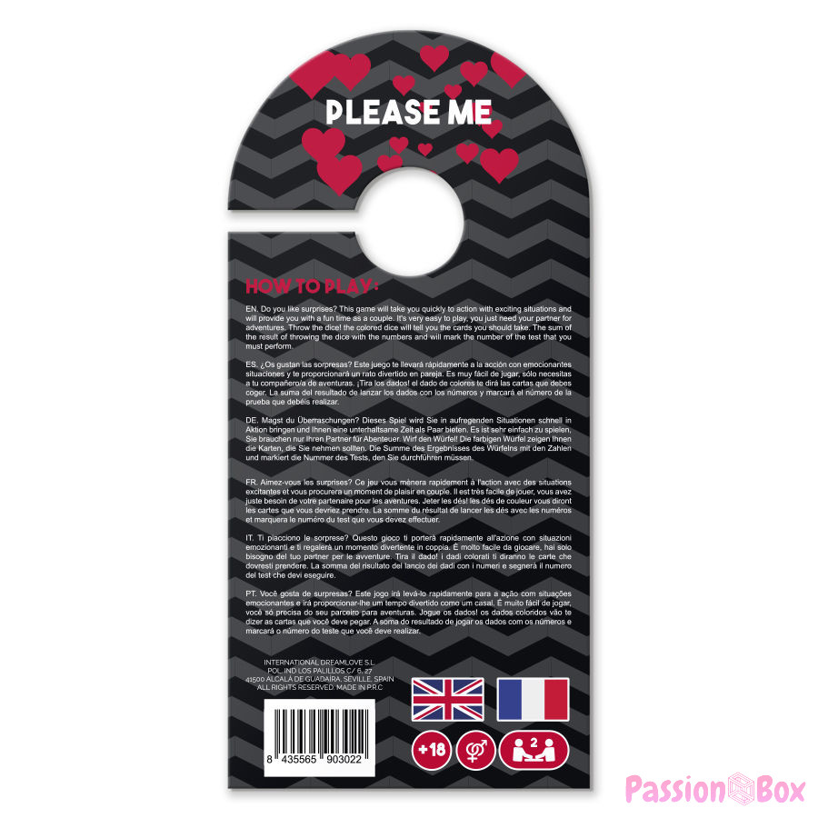 Do you like surprises? This game will take you quickly to action with exciting situations and will provide you with a fun time as a couple. It is very easy to play, you just need your adventure partner. Throw the dice! The colored dice will tell you the cards you should take. The result sum of throwing the dice with the numbers and will mark the number of the test that you must throw.
