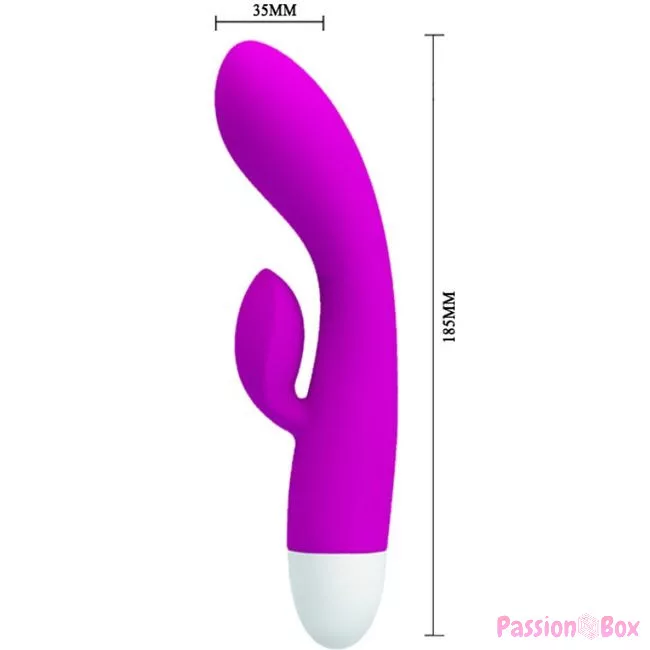 This rechargeable rabbit vibrator from Pretty Love is made of soft, high-quality silicone. The shaft of the vibrator is angled to perfectly reach the G-spot while the soft and flexible rabbit part stimulates the clitoris.