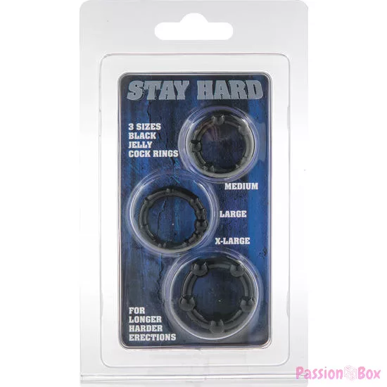 Kit of three silicone rings of different sizes, which adapt to any size penis, with which you will make your erection much longer lasting, since the rings allow you to delay ejaculation and keep your penis erect much longer.
