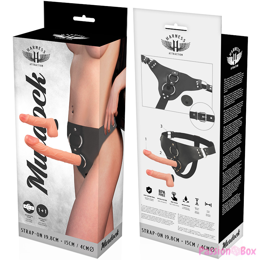 This Harness Attraction harness is equipped with two interchangeable realistic penises, with very well designed shapes to improve pleasure in relationships.