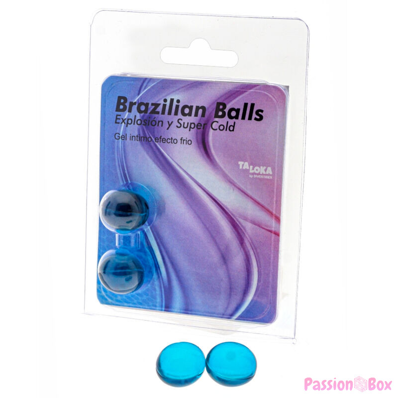 2 Brazilian balls with COLD EFFECT EXCITING GEL LUBRICANT. IT PROVIDES AN EXPLOSION OF PLEASURE WITH A COLD EFFECT THAT WILL PROLONG THE RELATIONSHIP, WORKING AS A RETARDANT.