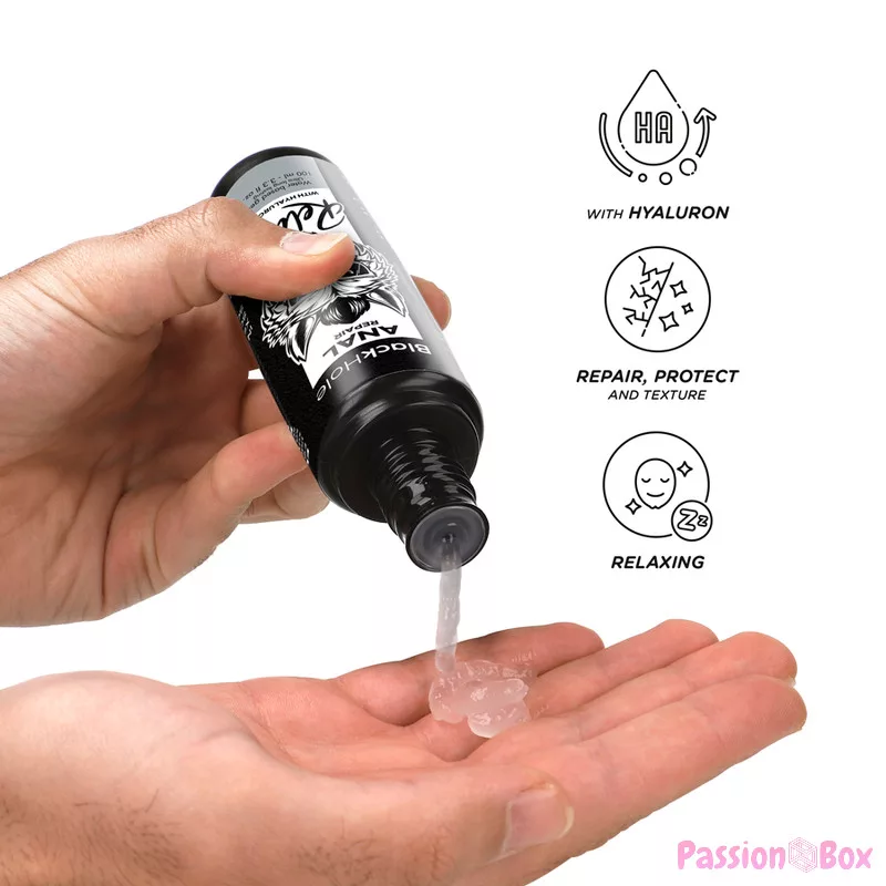 Black Hole Anal Repair with Hyaluron REPAIRS, PROTECT AND TEXTURIZES. This product was developed especially for anal pleasure. Due to the slightly numbing effect, the sphincter relaxes effectively and thus ensures painless penetration without loss of sensitivity. Simply massage gently into the anus, let it sit for a short time and begin your relaxed anal love adventure.