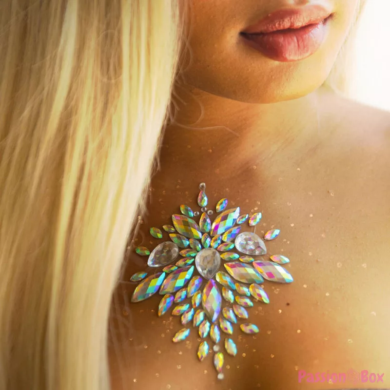 Elevate your holiday style to a whole new level with the mesmerizing Celestial Body Jewels sticker from Leg Avenue! These charming iridescent jewelry are carefully crafted from skin-friendly materials, ensuring a comfortable and safe experience for all-day wear. Get ready to stand out from the crowd and unleash your inner glow at raves, festivals and summer parties!