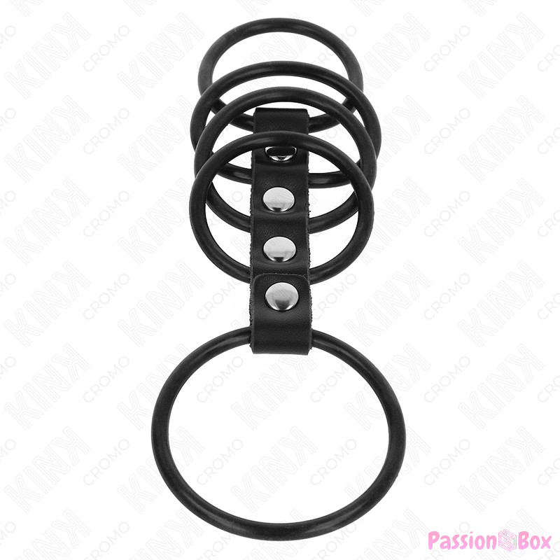 KINK - 5 SILICONE PENIS RINGS 3.8 CM TO 4.8 CM CONNECTED BY LEATHER