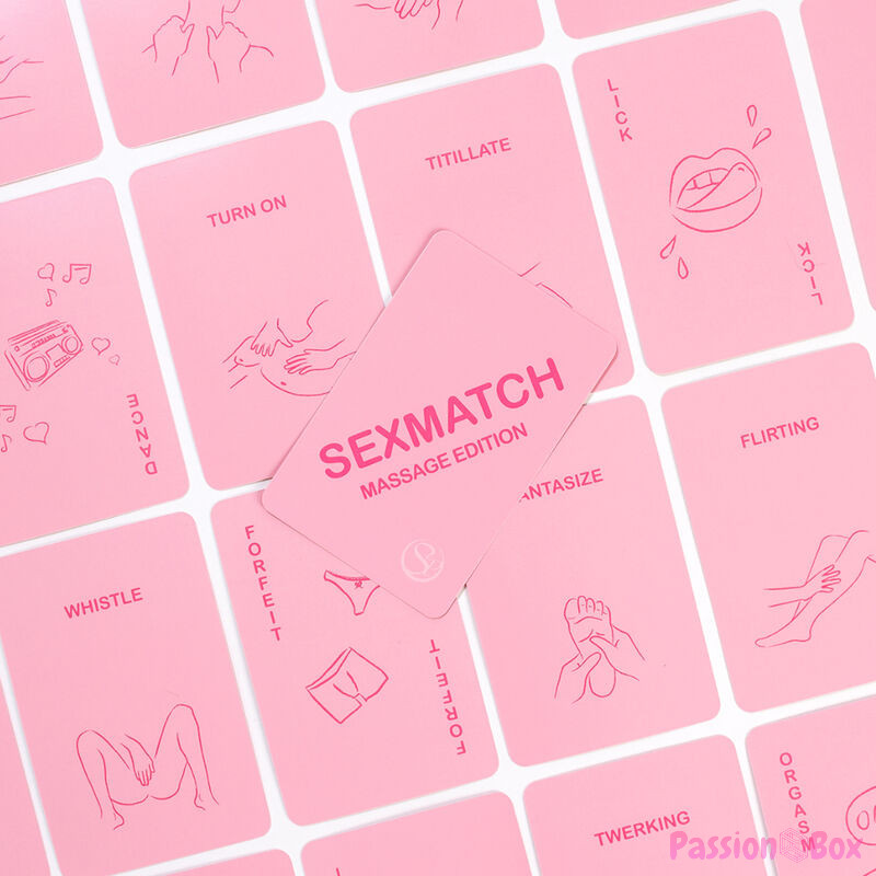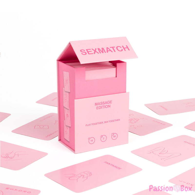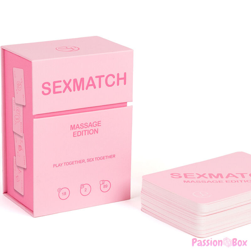 Sexmatch Massage Edition is the card game for couples in which you must match illustrations and words by completing challenges until one of you runs out of cards. The game contains 89 playing cards (81 cards and 8 jokers) and 1 guide card.