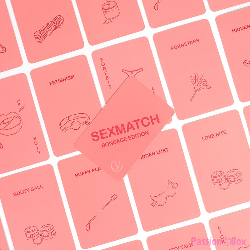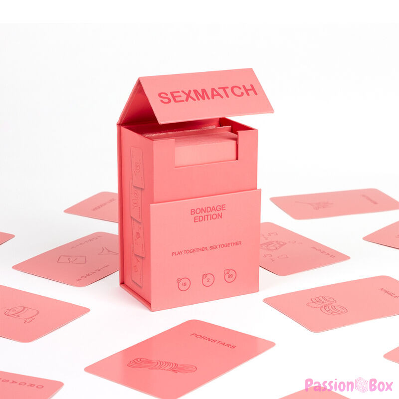 Sexmatch Bondage Edition is the card game for couples in which you must match illustrations and words by completing challenges until one of you runs out of cards. The game contains 89 playing cards (81 cards and 8 jokers) and 1 guide card.
