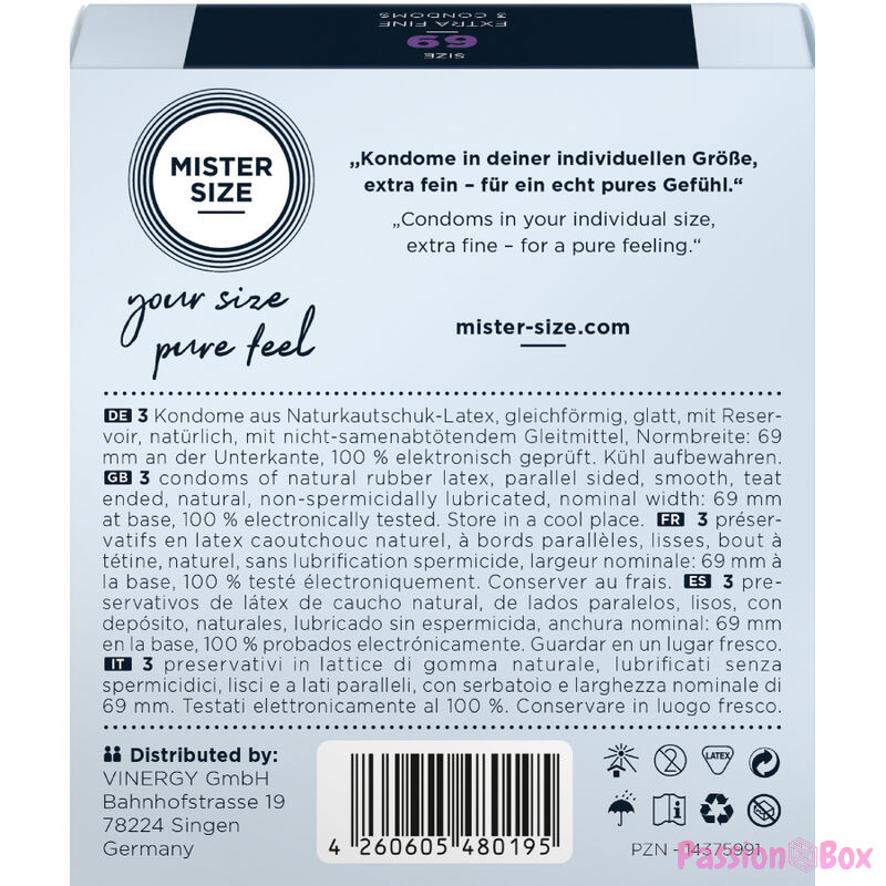 In addition to responsibility and care during sex, men with a heavy penis naturally also need the right condom, which can be difficult to find - until now. Fortunately, MISTER SIZE 69 is like a personal tailor-made suit. It fits perfectly to your best part like a second skin and allows you to experience moments of intensity and pleasure. No annoying side effects, just pure sensation.