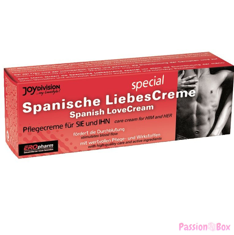 Apply a little Eropham Spanish love cream to your hand, spread it making gentle circular movements on the penis and testicles, on the vulva, apply to the outer lips and clitoris.